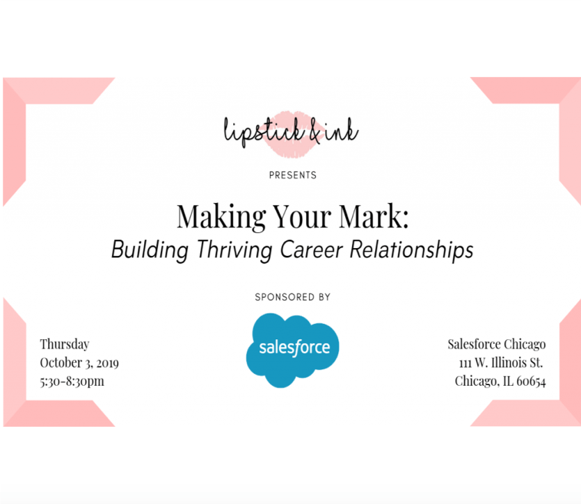 This is an exciting update! BIG thanks to my colleague and friend, Kelly Nash, founder of Lipstick & Ink. Our current careers at Salesforce brought us together and we quickly learned we have so much to connect and collaborate on! I was so honored when she invited me to join her back in my former home of Chicago this coming October for a career development event and workshop, kindly hosted by Salesforce. We’ll get to know Kelly and her career advice, and host an interactive workshop featuring The Knock Method℠, my 5-step methodology for building positive and long-lasting career relationships. We’ll explore our own personal brands, uncover what makes someone else tick, and provide solutions for each others’ career challenges so attendees walk away with ideas and knowing a group of professional go-getters that will boost your careers right away.